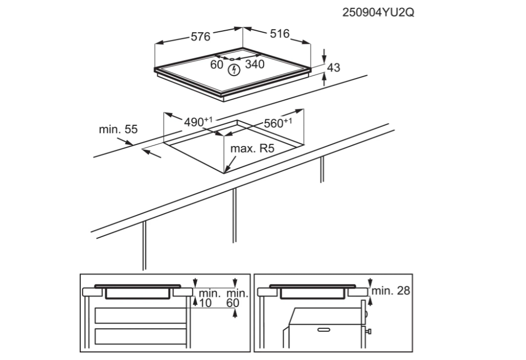 Šířka varné desky 57,6 cm